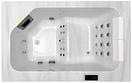 Стоит отметить, что расположение гидромассажных форсунок в данном СПА-бассейне уникально, поскольку они оказывают воздействие на всю спину от шеи и до поясницы, массируя самые проблемные зоны. Благодаря тому, что для каждого места в чаше форсунки установлены по-разному, у пользователей есть возможность делать акцент на массаж тех или иных зон. Сочетание водяных и воздушных форсунок в конструкции бассейна позволяет улучшить гидромассажный эффект, также создается роскошный эффект пузырьков.